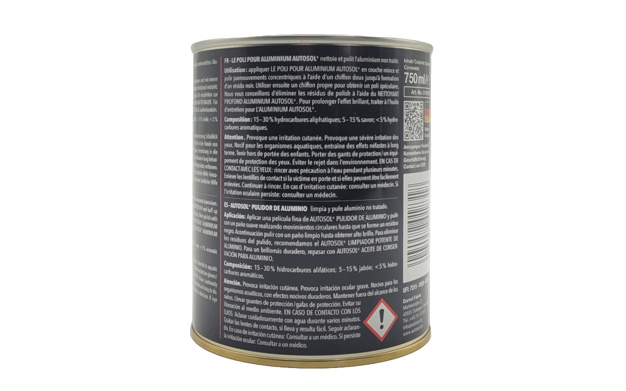 Полироль Autosol объёмом 750 мл — это удобный формат для регулярного ухода за алюминиевыми изделиями. Подходит для использования на различных типах алюминиевых поверхностей, профилей.