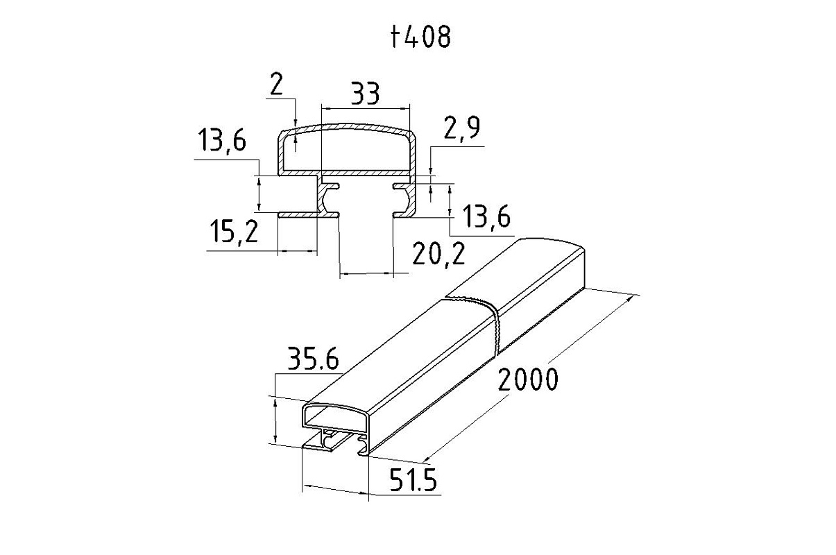 Трек для раздвижной системы на G-профиле, длина 2000мм t408