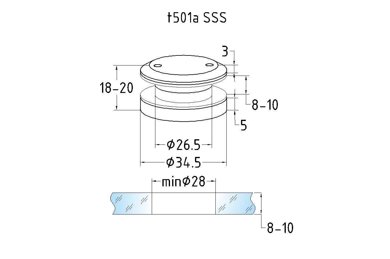 Точечный стеклодержатель 6 мм, нерегулируемый, без зенковки, для стекла 8-10 мм t501A SSS