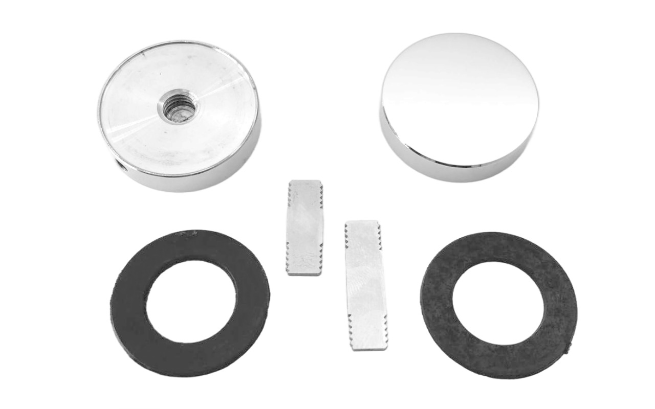 Коннектор состоит из двух частей, в которой есть пластина с резьбой, куда ответная часть коннектора закручивается с обратной стороны стекла.