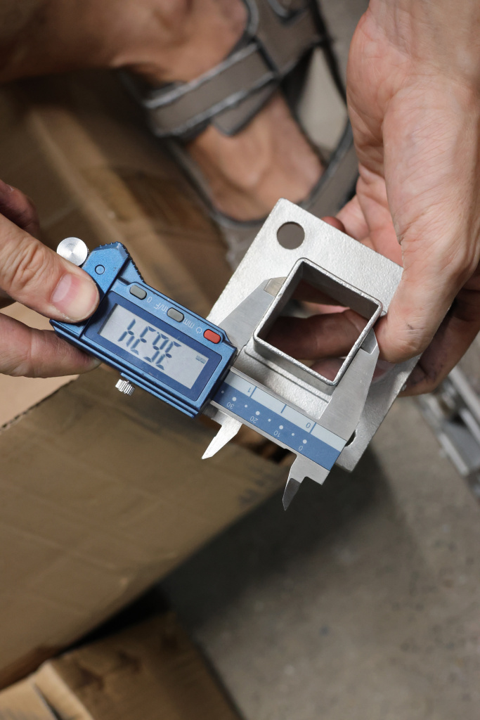Фланец для трубы 40х40 мм с четырьмя отверстиями. Деталь литая, шлифованная, закладная под стойку. Марка стали - AISI 304
