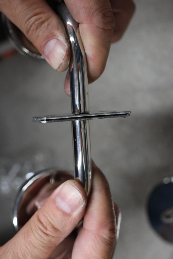 Держатель поручня выносной на стойку, с регулируемым ложементом под трубу Ø38.1 мм, резьба внутренняя М8, полированный, (AISI 304) k261  купить в Ростове-на-Дону