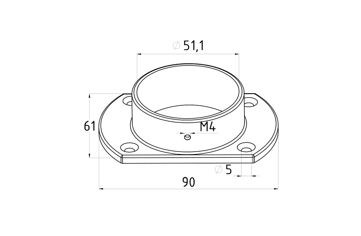 Фланец для трубы Ø50.8 мм, 90х3 мм, полированный, литой (AISI 316) k022-3