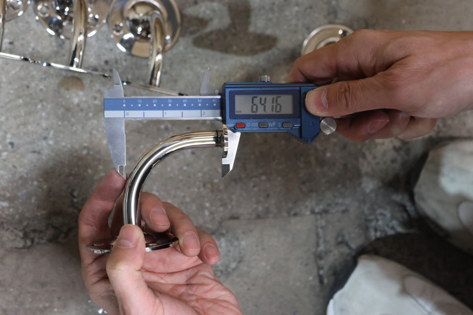 Пристенок с ложементом на плоскость, вынос 65х65, Ø60х3 мм, сварной, нержавеющая сталь AISI 304 полированная k234-5