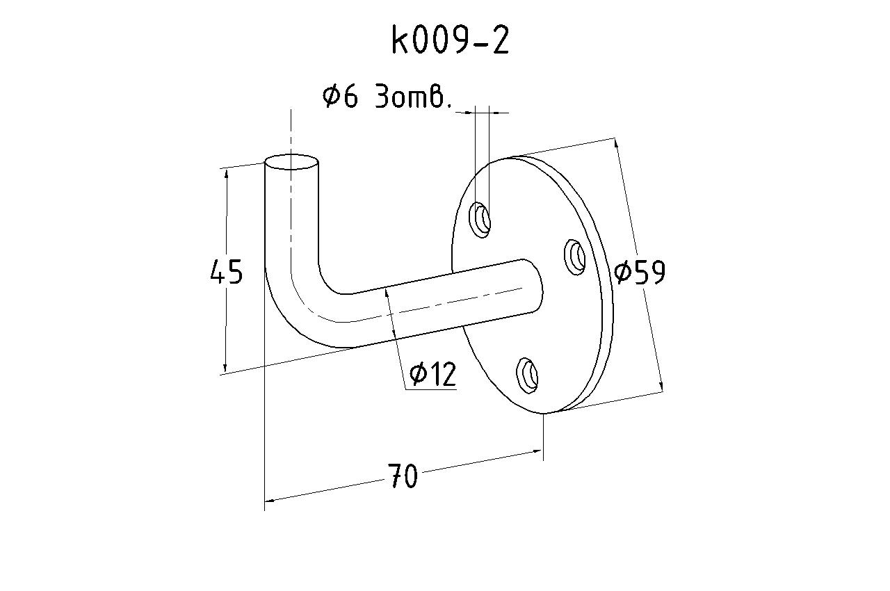 Устанавливается в стену на три самореза (анкера) Ø3 мм. Сам поручень крепится при помощи сварки.