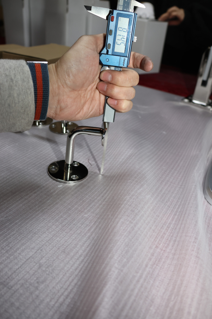 Благодаря оптимально подобранному выносу, пристенный поручень достаточно удален от поверхности стены, чтобы не задевать скользящей вдоль трубы поручня рукой идущего по лестнице человека. Но при этом поручень располагается близко к стене, дабы не сужать свободное пространство полезной ширины лестничного марша. Габариты: вынос 70х45 мм, Ø60х3мм, ложемент 25 х 45 х 2 мм