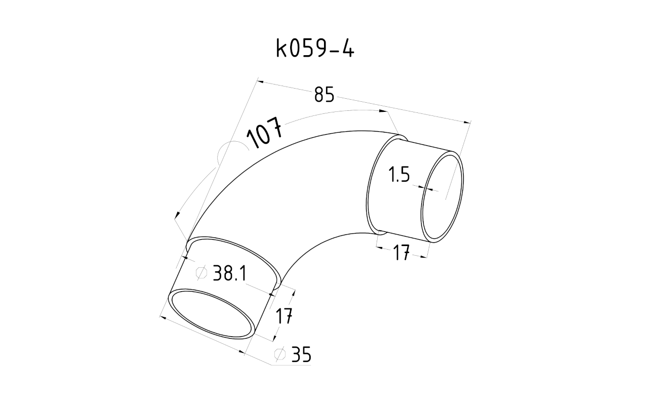 Отвод поручня под Ø38.1х110х1.5 мм, 90°, литой, полированный 600 Grit, с двумя установочными кольцами, (AISI 316) k059-4