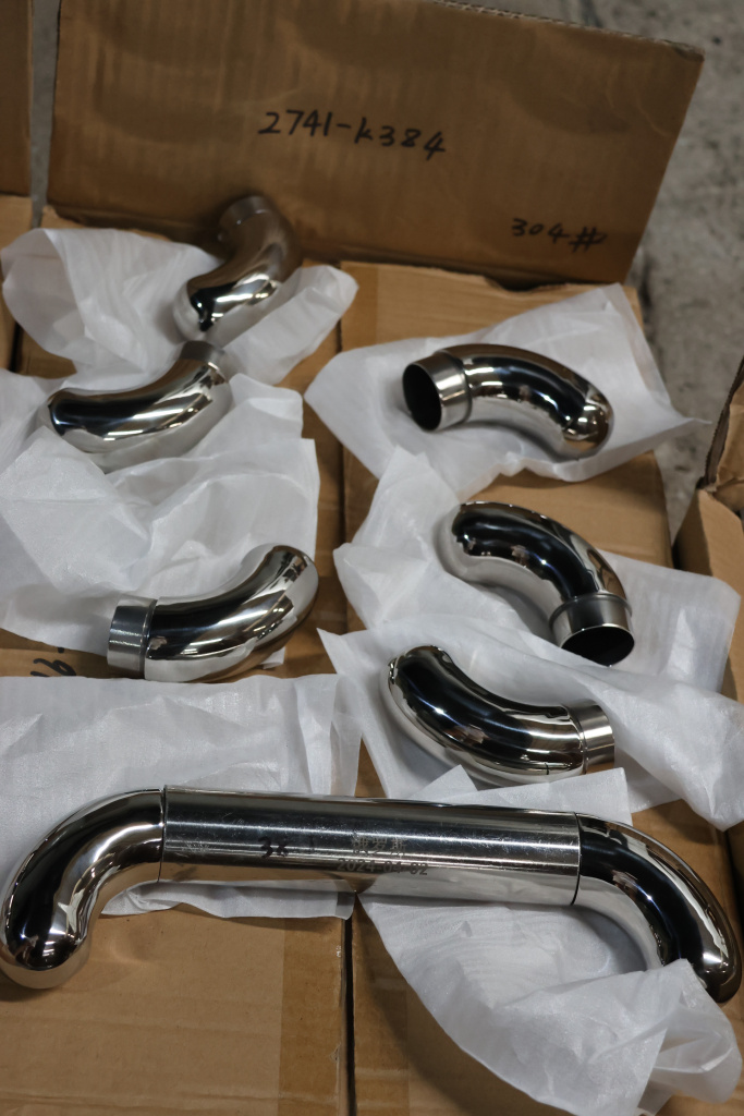 Отвод оконечный литой Ø38.1х100х1,45 мм, с круглой заглушкой, полированный 600 Grit, AISI 304, k384