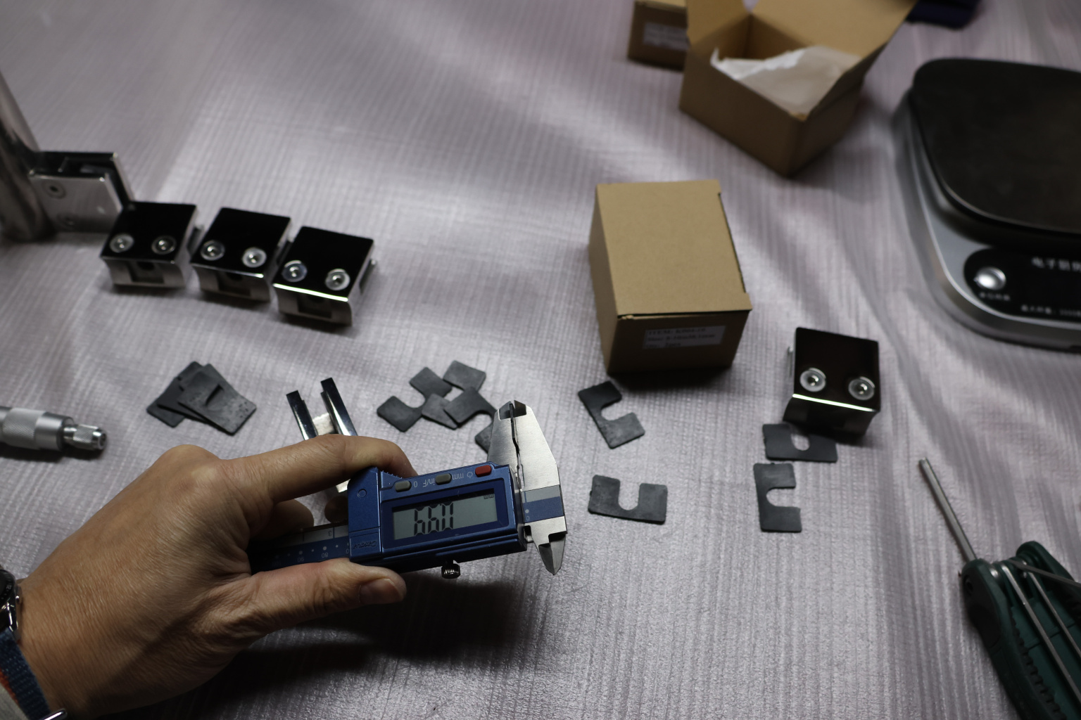 Стеклодержатель литой квадратный с вставками под стекло 8-10 мм (4+4 мм), на стойку Ø38.1 мм, 41х22х42, полированный, (AISI 304) k004-10