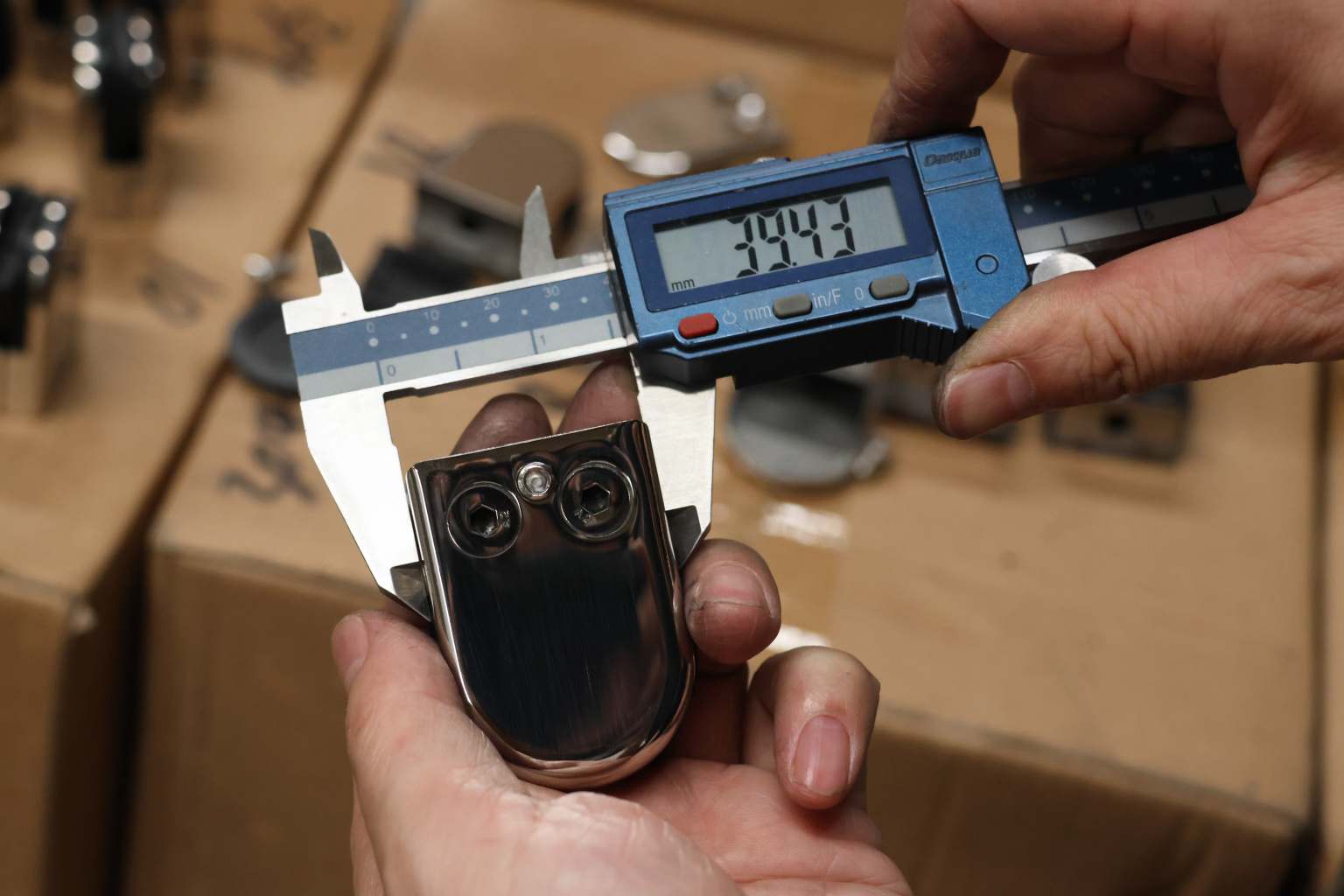 Стеклодержатель штампованный, под стекло 10 мм (5+5 мм), квадратный под стойку Ø38.1 мм (40х24х48 ) полированный AISI 304 k351-10