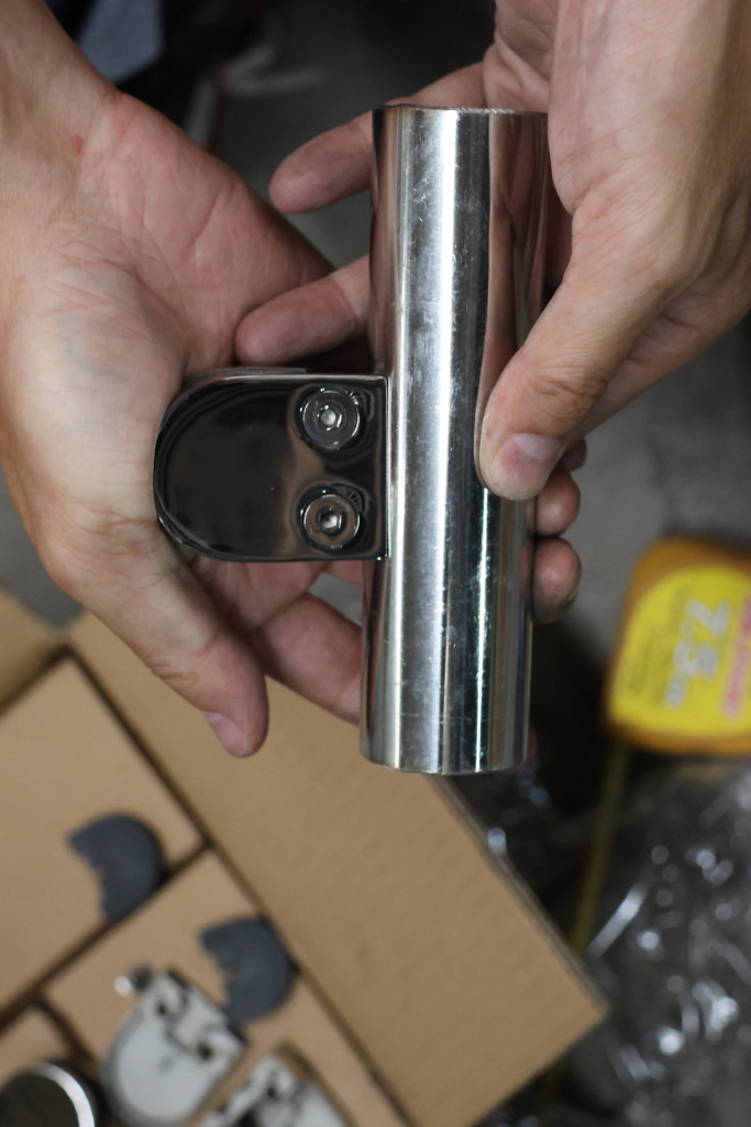 Стеклодержатель литой под стекло 8 мм (4+4 мм), под стойку Ø38.1 мм 40х22х49, полированный (AISI 304) k001-4