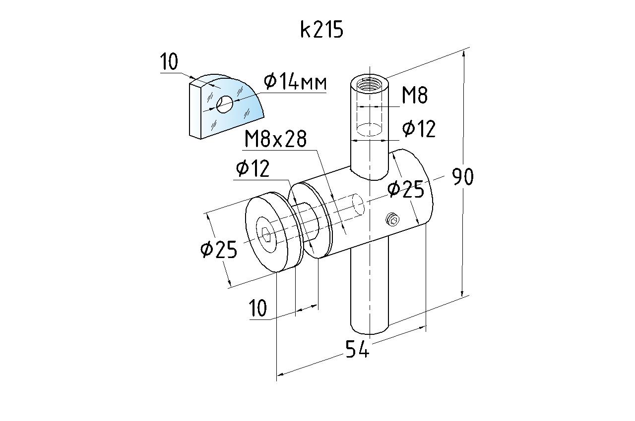 Спайдерный стеклодержатель для стекла 10 мм (5+5 мм), полированный, регулируемый (AISI 201) k215