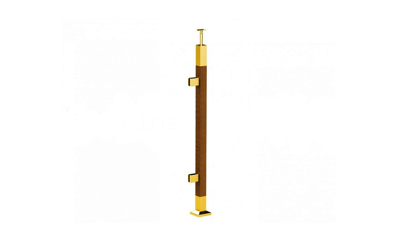 Готовая стойка 40х40х950 мм, деревянная, со вставками из нержавеющей стали 2х100 мм с 2 зажимными стеклодержателями, под золото k740-4-R-G купить в Ростове-на-Дону