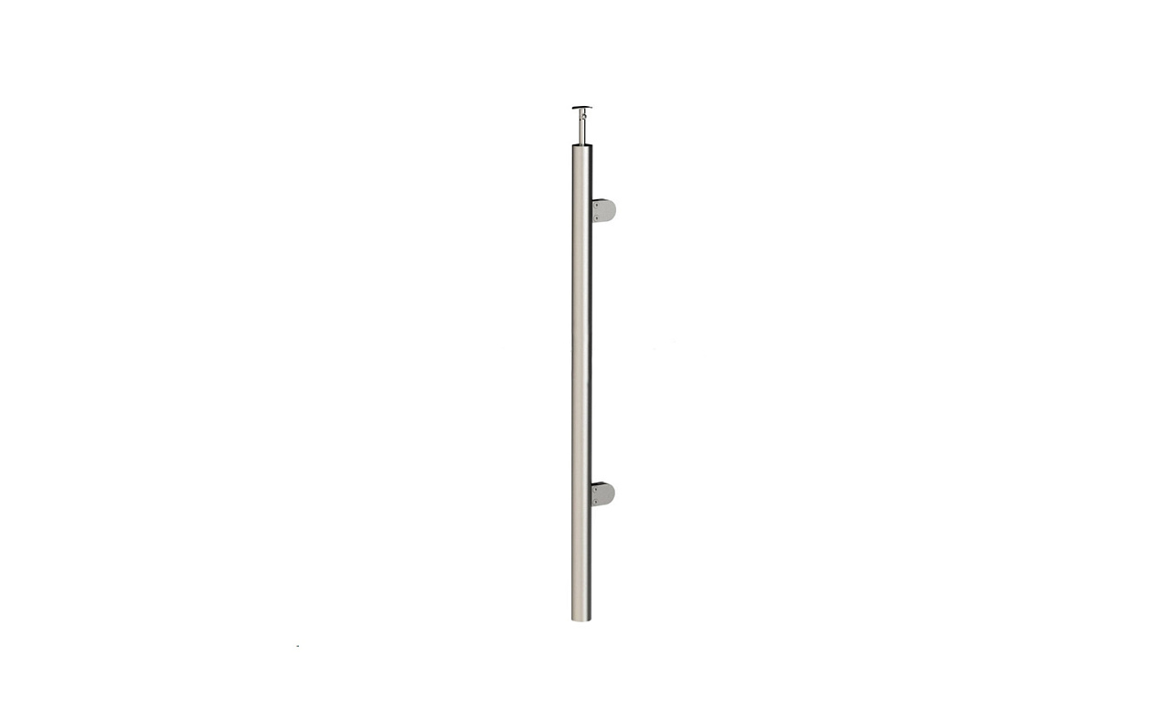 Стойка круглая Ø38.1: 2 пластинчатых стеклодержателя, полированная, с одноанкерым крепежом, высота 950 мм (AISI 304) k739