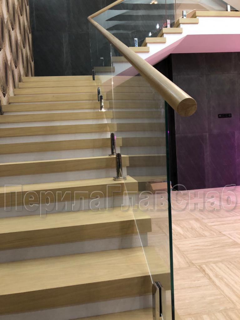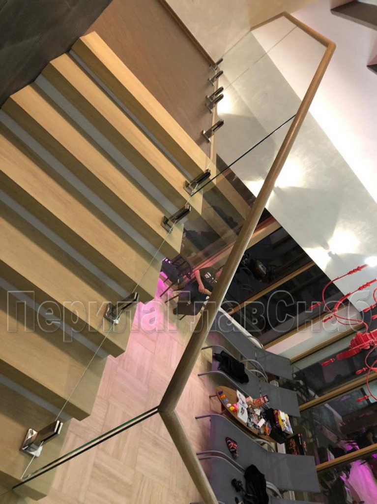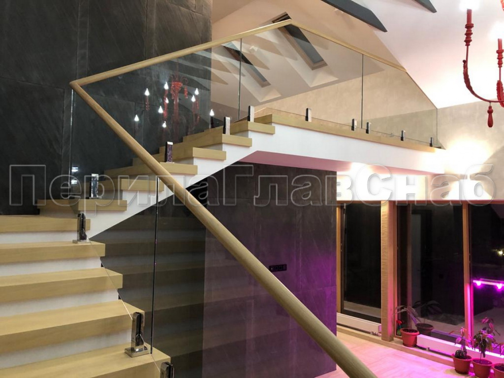 Конструктив:  дубовые  перила на калёном  стекле  10 мм, с  министойками