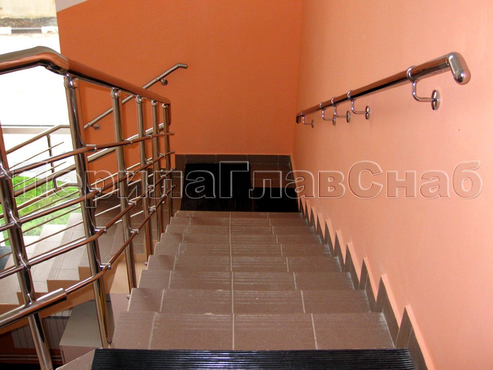 Крепление стоек было торцевое, так как по просьбе заказчика необходимо было максимально увеличить полезную ширину марша, согласно строгим требованиям безопасности.