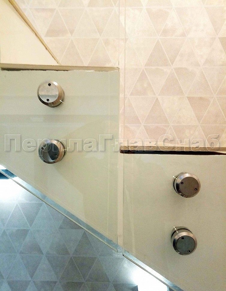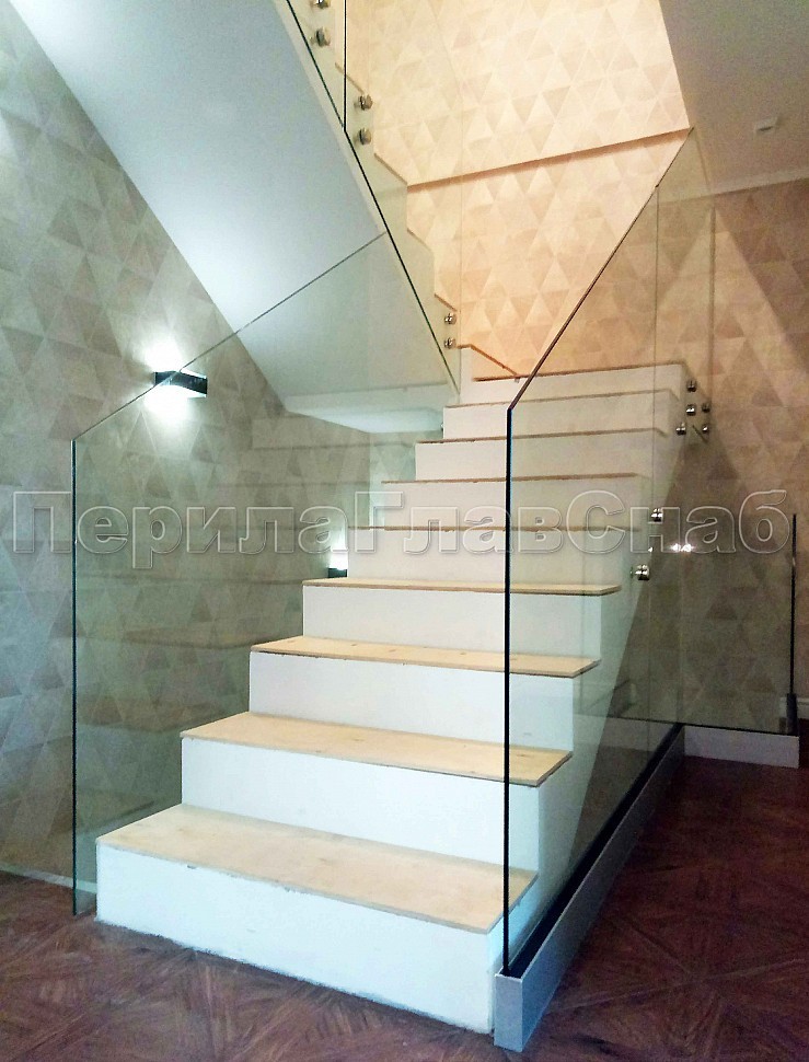 Лестница со стеклянным ограждением без стоек и торцевым креплением.