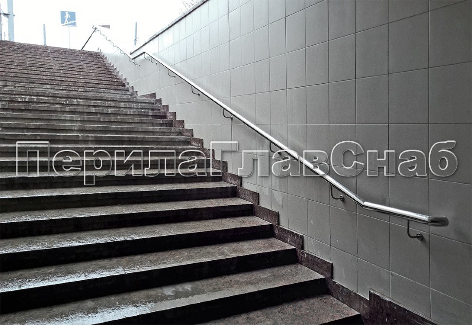 Пристенные поручни и сдвоенные пристенные поручни для детей и инвалидов в подземном переходе на шоссе Энтузиастов в Москве.