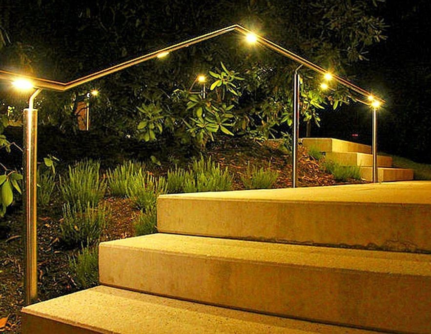 Часто используют подсветку поручня на ограждениях на улице, для эффектной подсветки проходных участков, а также для визуального отделения пешеходной и проезжей части