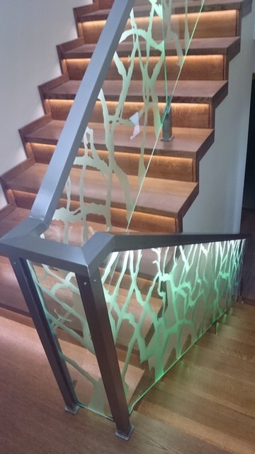 Ограждения лестниц на несущем стекле с подсветкой