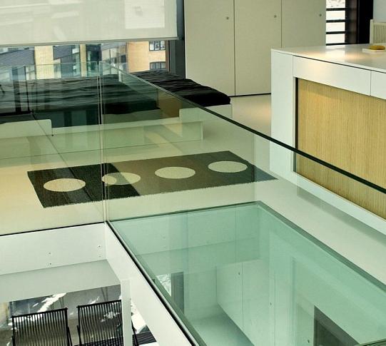Стеклянный пол для легкого перекрытия между этажами