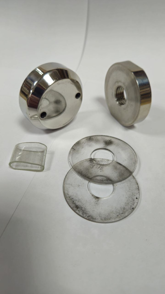 Комплект торцевого крепления несущего стекла, гайка-шайба Ø50х10х18 мм с внутренней резьбой М16(для оцинковки), полированный AISI 304, уценка.